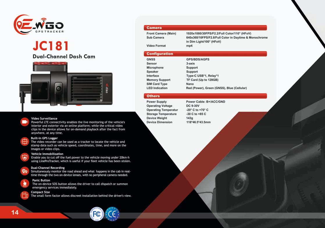 | Front Camera (Main) | 1920×1080/30FPS/F2.2/Full color/110° (HFoV) |
